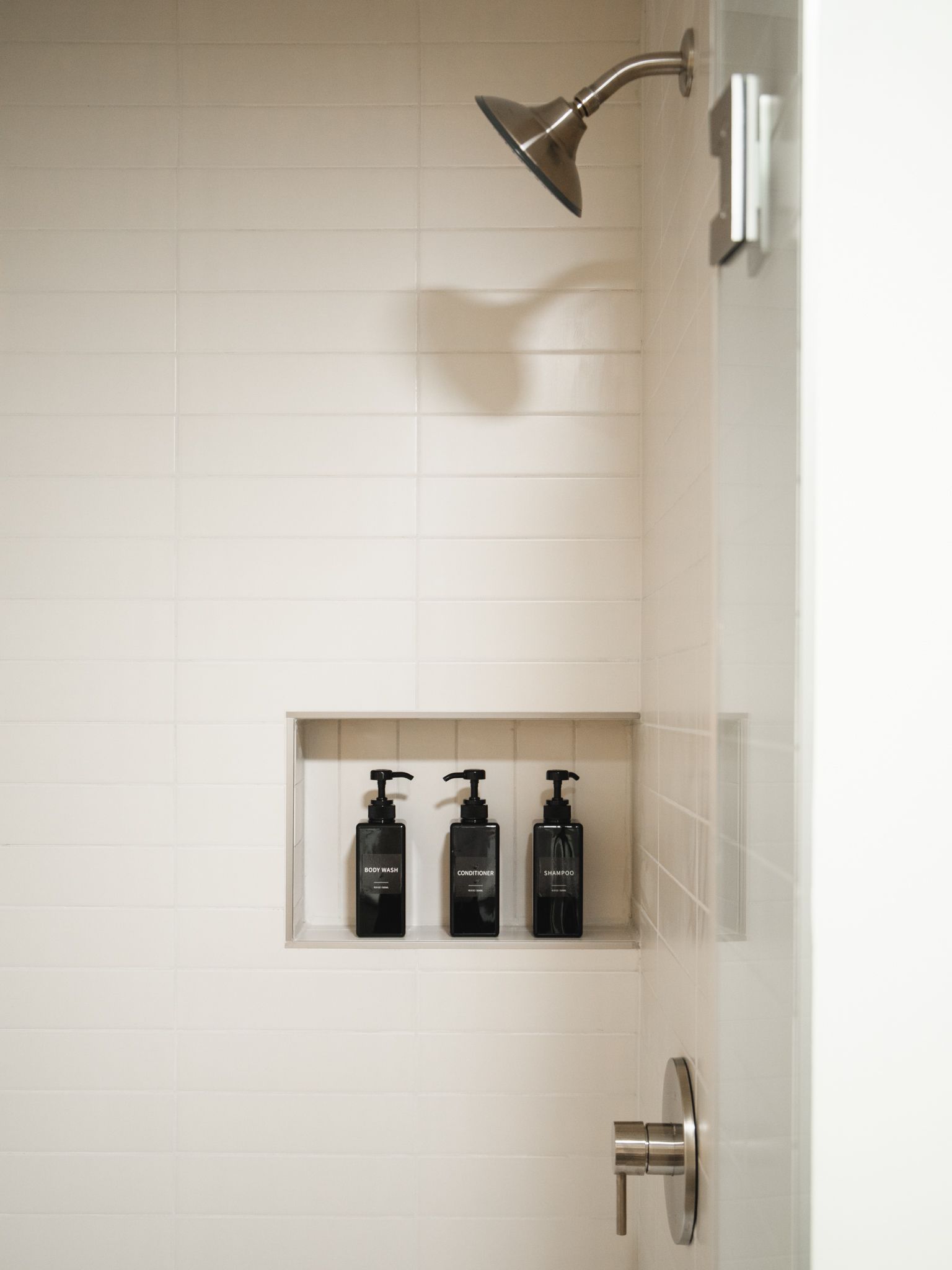 - Walk-In Tile Shower with Glass Door